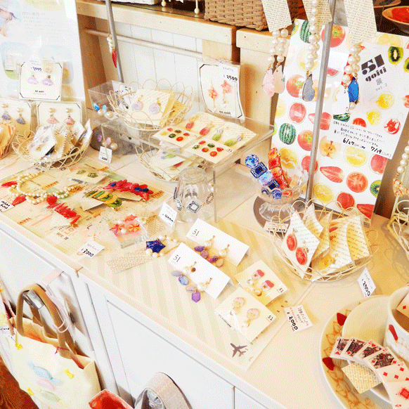 人気作家を集め、アクセサリー、バック、ポーチ、ハンカチなど