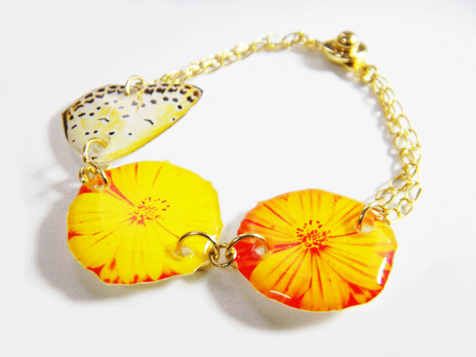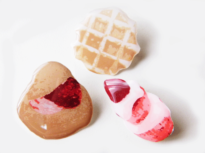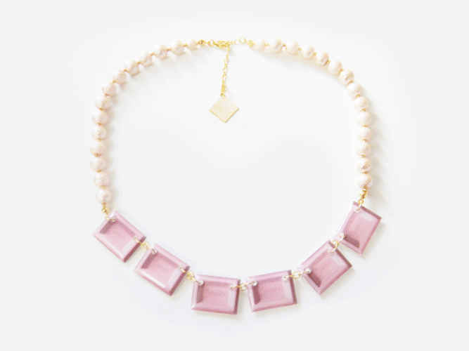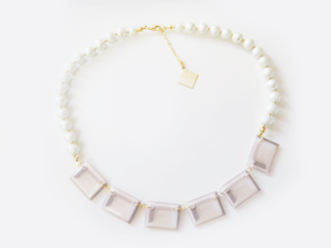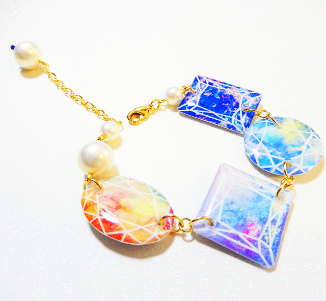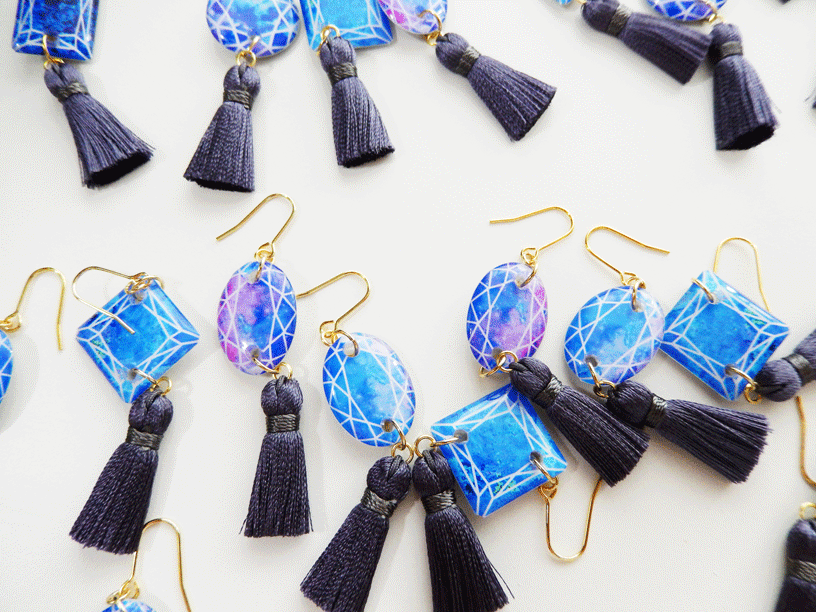 写真やグラフィックを使ったアクセサリーをファッションにコラージュする様なイメージで製作しております。
