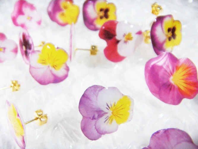 パンジー、ビオラ、のピアスのレッドトーンバージョンです!!