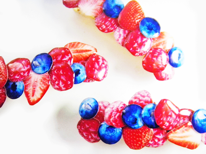 写真やグラフィックを使ったアクセサリーをファッションにコラージュする様なイメージで製作しております。